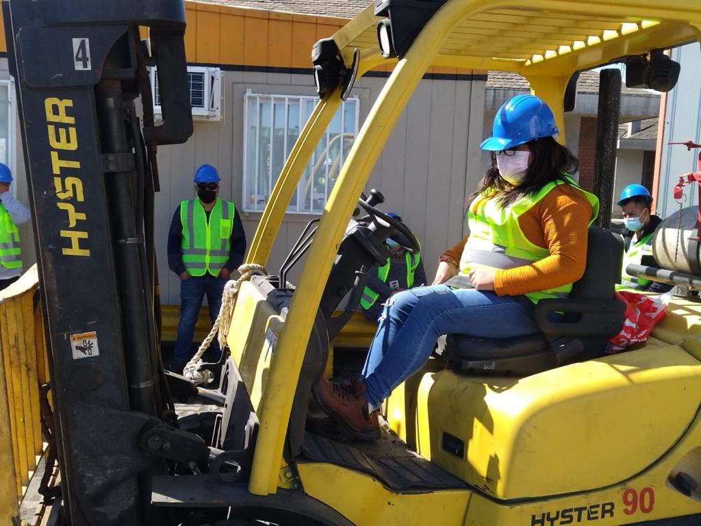 Tras culminar la fase teórica en la Escuela Esmeralda, los beneficiarios del programa Puerto Educa ensayaron con maquinaria en las instalaciones del operador logístico.