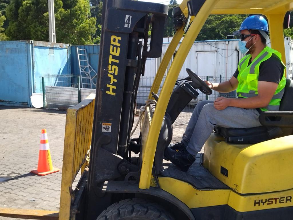 De un lunes a un sábado, de 8 a 14 horas, realizaron sus clases prácticas las 20 alumnas y alumnos del curso gratuito de operador de grúa horquilla organizado por la Comunidad Logística de Talcahuano (Comlog), en el marco del programa Puerto Educa.